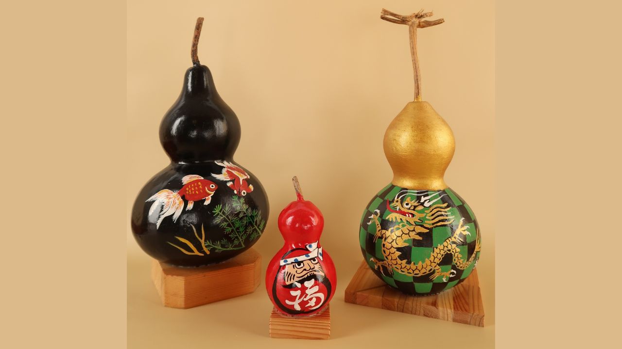 本庄市宮戸ひょうたん園で育てたひょうたんを素材に使った縁起の良いひょうたん工芸品です。