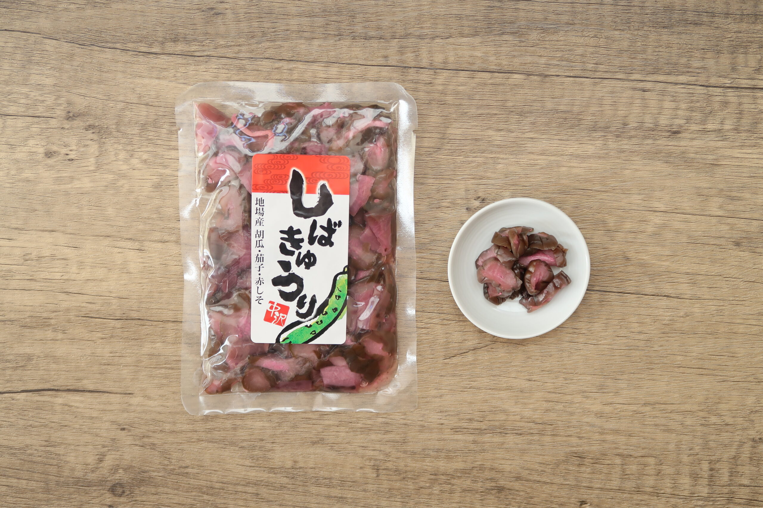 本庄産のきゅうり、なす、赤しそを使用。さっぱりした味わいで、ごはんのお供にも。お酒のおつまみにもピッタリです。食欲のないときなどにも。