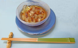日本三大河川の一つ「坂東太郎」と呼ばれる利根川を思わせるくずきりです。別の器に移し替えて氷または冷水を加えることで黒糖の深いコクとくずきりのつるっとした食感が味わえます。
