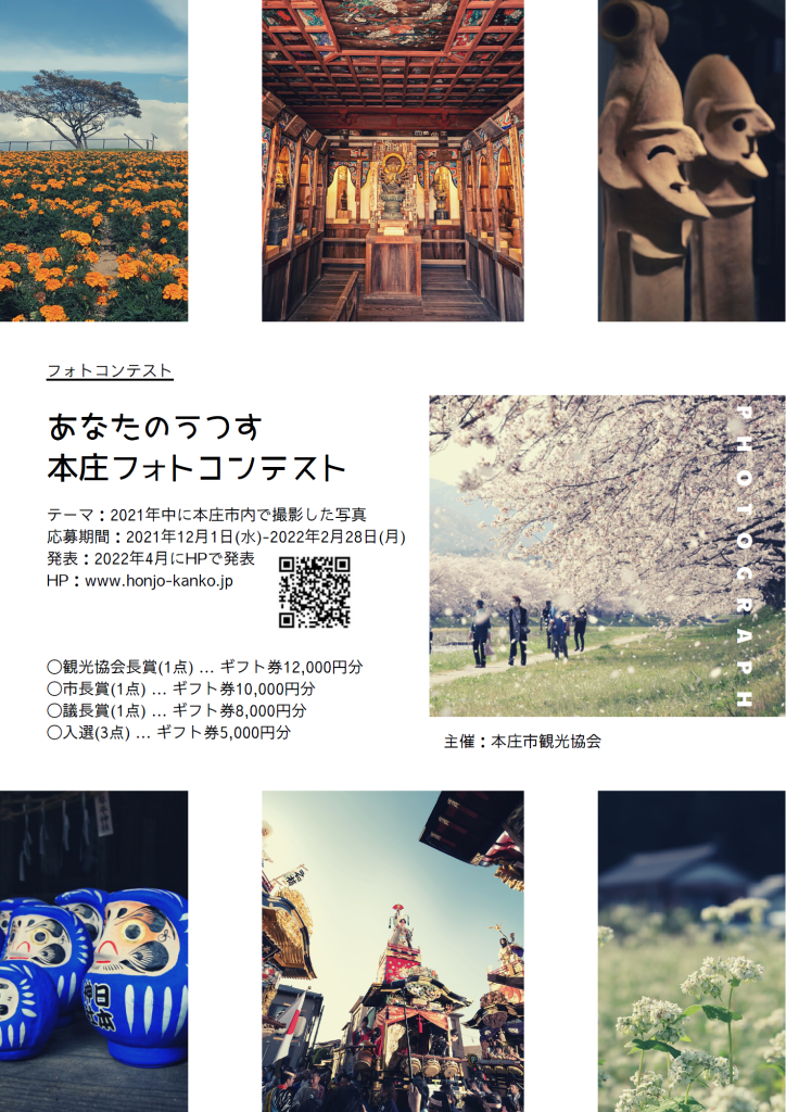 2021年(令和3年)中に本庄市内で撮影した写真(名所・旧跡、四季の風景や市内で開催されたイベントなど本庄らしさを表現したもの)で未発表作品