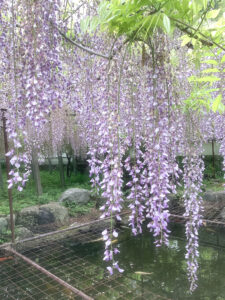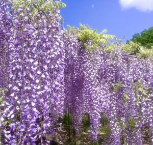 また、花房が約1m以上もの長さになる「骨波田の藤」のムラサキナガフジについては、順調に開花をはじめ、花房は約30cmほどになりました。
