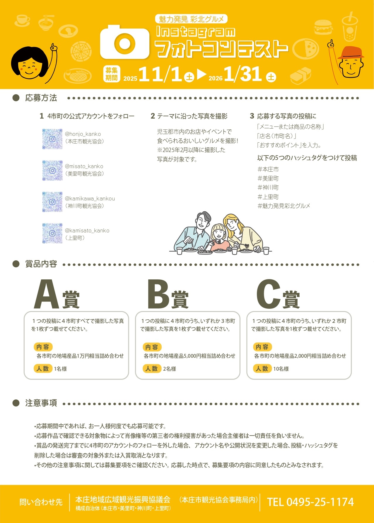 本庄地域広域観光振興協議会では、児玉郡市の魅力を広くPRするイベントとして、インスタグラムフォトコンテストを開催します。