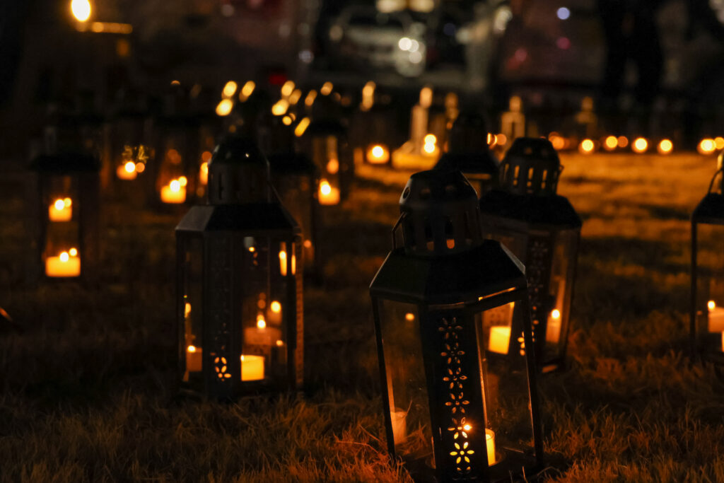 歩道に並ぶ約1000個のランタンが灯り、幻想的な光景が広がります。