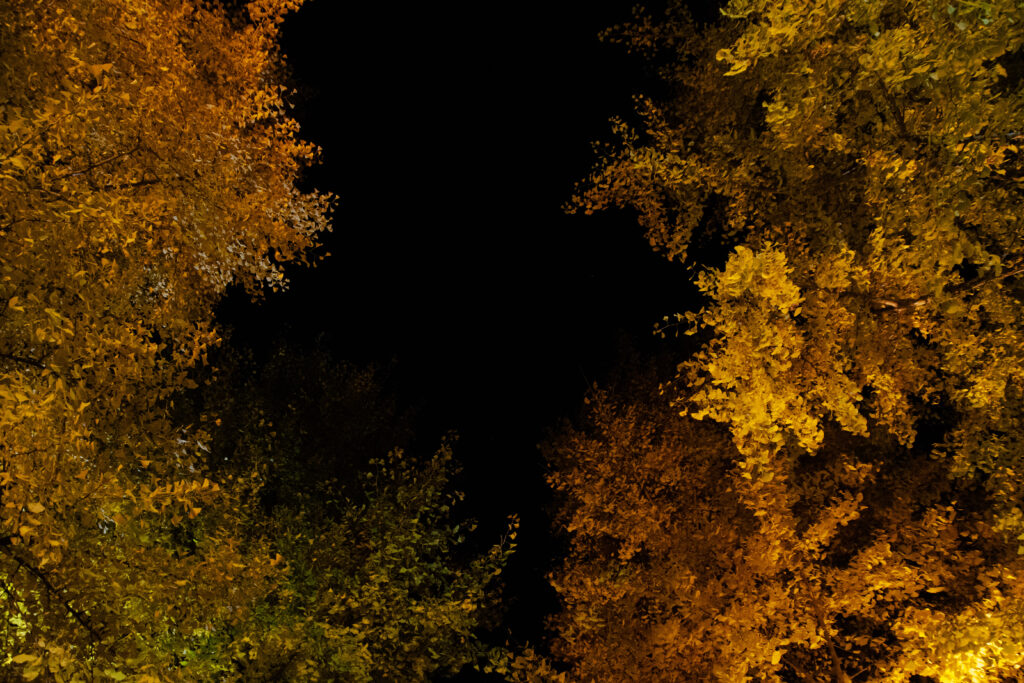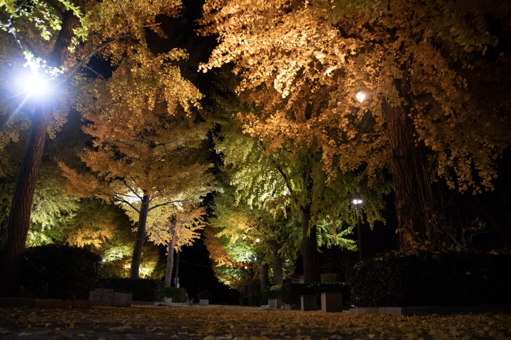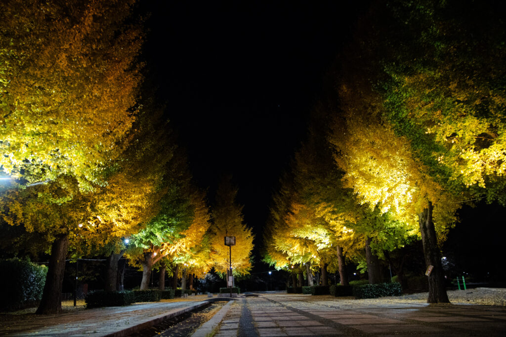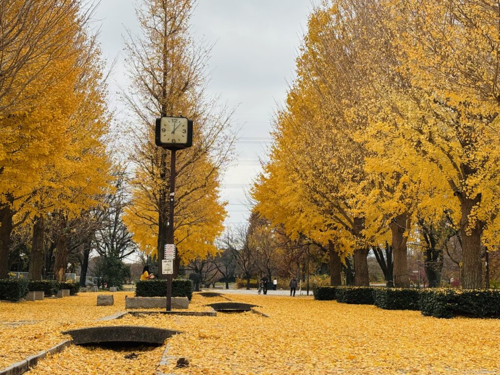 本庄総合公園のいちょう並木が黄色に色づいています。